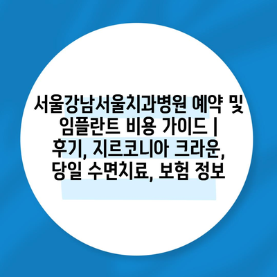 서울강남서울치과병원 예약 및 임플란트 비용 설명서 | 후기, 지르코니아 크라운, 당일 수면치료, 보험 정보에 대한 내용을 알려알려드리겠습니다.