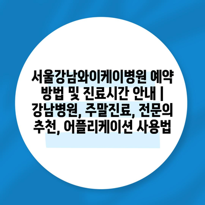 ✅ 서울강남와이케이병원 예약 방법과 팁을 지금 바로 확인해 보세요.