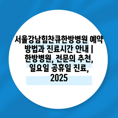 서울강남힘찬큐한방병원 예약 방법과 진료시간 공지 | 한방병원, 전연락 추천, 일요일 공휴일 진료, 2025 에 대해 자주 묻는 질문 TOP 5