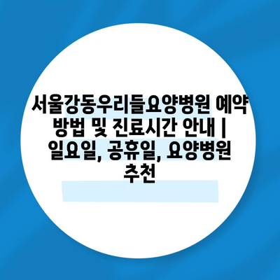 ✅ 서울강동우리들요양병원의 예약 방법과 진료시간을 자세히 알아보세요!