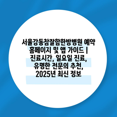 서울강동참잘함한방병원 예약 홈페이지 및 앱 설명서 | 진료시간, 일요일 진료, 유명한 전연락 추천, 2025년 최신 정보