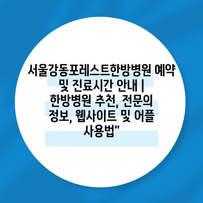 서울강동포레스트한방병원 예약 방법과 진료시간을 지금 바로 확인하세요!