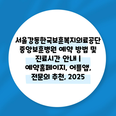 서울강동한국보훈복지의료공단 중앙보훈병원 예약 방법 및 진료시간 공지 | 예약홈페이지, 어플앱, 전연락 추천, 2025 에 대해 자주 묻는 질문 TOP 5
