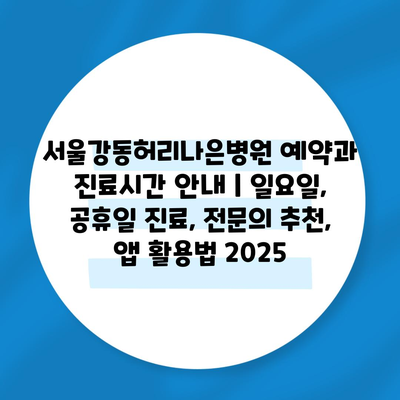 서울강동허리나은병원 예약과 진료시간 공지 | 일요일, 공휴일 진료, 전연락 추천, 앱 활용법 2025에 대해 자주 묻는 질문 TOP 5