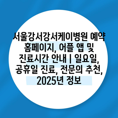 서울강서강서케이병원 예약 홈페이지, 어플 앱 및 진료시간 안내 | 일요일, 공휴일 진료, 전문의 추천, 2025년 정보