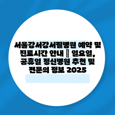 서울강서강서필병원 예약 및 진료시간 공지 | 일요일, 공휴일 정신병원 추천 및 전연락 정보 2025 에 대해 자주 묻는 질문 TOP 5