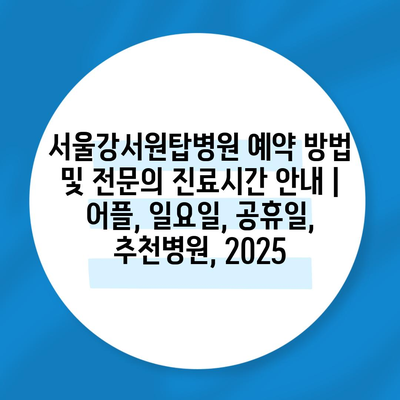 서울강서원탑병원 예약 방법 및 전연락 진료시간 공지 | 어플, 일요일, 공휴일, 추천병원, 2025 에 대해 자주 묻는 질문 TOP 5