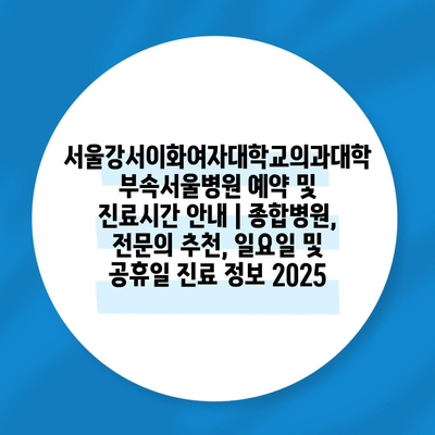 서울강서이화여자대학교의과대학부속서울병원 예약 및 진료시간 공지 | 종합병원, 전연락 추천, 일요일 및 공휴일 진료 정보 2025 에 대해 자주 묻는 질문 TOP 5