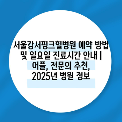 서울강서핑크힐병원 예약 방법 및 일요일 진료시간 공지 | 어플, 전연락 추천, 2025년 병원 정보 에 대해 자주 묻는 질문 TOP 5