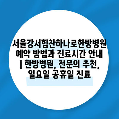 ✅ 서울강서힘찬하나로한방병원 예약 방법을 자세히 알아보세요.