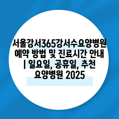 서울강서365강서수요양병원 예약 방법 및 진료시간 공지 | 일요일, 공휴일, 추천 요양병원 2025 에 대해 자주 묻는 질문 TOP 5
