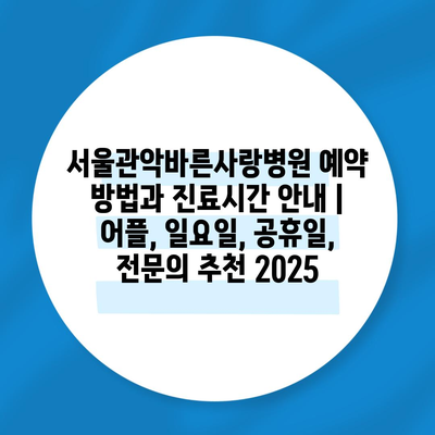 ✅ 서울관악바른사랑병원의 예약 방법과 진료시간을 지금 바로 알아보세요.
