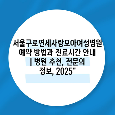 ✅ 구로연세사랑모아여성병원의 예약 방법과 진료시간을 지금 바로 알아보세요.