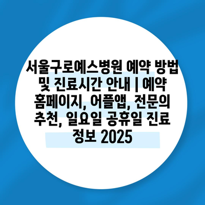 ✅ 서울구로예스병원의 진료시간과 예약 방법을 지금 확인해보세요!