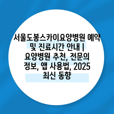 서울도봉스카이요양병원 예약 및 진료시간 공지 | 요양병원 추천, 전연락 정보, 앱 사용법, 2025 최신 동향 에 대해 자주 묻는 질문 TOP 5