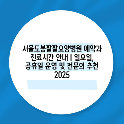 서울도봉팔팔요양병원 예약과 진료시간 공지 | 일요일, 공휴일 운영 및 전연락 추천 2025 에 대해 자주 묻는 질문 TOP 5