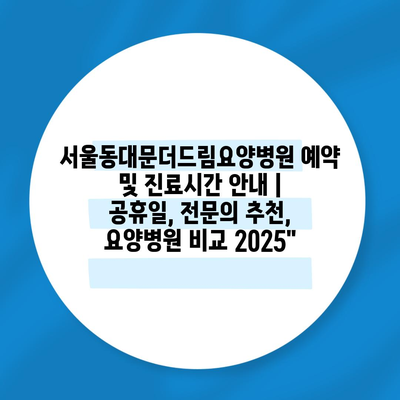 서울동대문더드림요양병원 예약 및 진료시간 공지 | 공휴일, 전연락 추천, 요양병원 비교 2025 에 대해 자주 묻는 질문 TOP 5