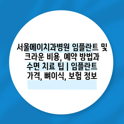 서울메이치과병원 임플란트 및 크라운 비용, 예약 방법과 수면 치료 팁 | 임플란트 가격, 뼈이식, 보험 정보 에 대해 자주 묻는 질문 TOP 5