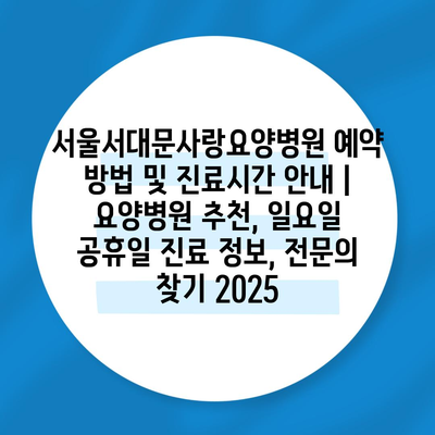 ✅ 서울서대문사랑요양병원의 진료시간과 예약 방법을 지금 바로 알아보세요.