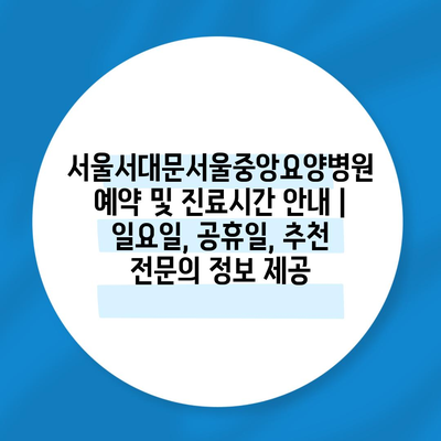 ✅ 서울서대문서울중앙요양병원의 진료시간과 예약 방법을 알아보세요.