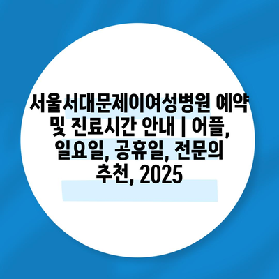 ✅ 서울서대문제이여성병원의 진료시간과 예약 방법을 알아보세요.