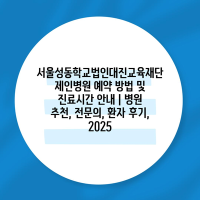 서울성동학교법인대진교육재단 제인병원 예약 방법 및 진료시간 공지 | 병원 추천, 전연락, 환자 후기, 2025 에 대해 자주 묻는 질문 TOP 5