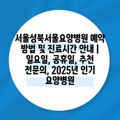 서울성북서울요양병원 예약 방법 및 진료시간 공지 | 일요일, 공휴일, 추천 전연락, 2025년 인기 요양병원 에 대해 자주 묻는 질문 TOP 5