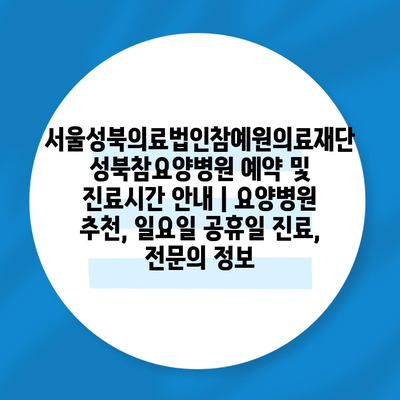 서울성북의료법인참예원의료재단 성북참요양병원 예약 및 진료시간 공지 | 요양병원 추천, 일요일 공휴일 진료, 전연락 정보 에 대해 자주 묻는 질문 TOP 5