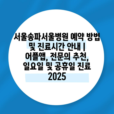 ✅ 서울송파서울병원 예약 방법과 진료시간을 지금 바로 확인하세요!