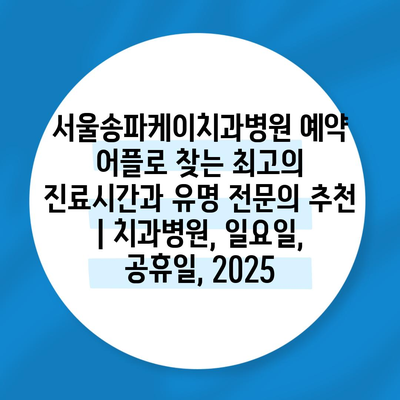 서울송파케이치과병원 예약 어플로 찾는 최고의 진료시간과 유명 전연락 추천 | 치과병원, 일요일, 공휴일, 2025 에 대해 자주 묻는 질문 TOP 5