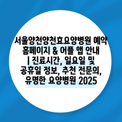 서울양천양천효요양병원 예약 홈페이지 & 어플 앱 공지 | 진료시간, 일요일 및 공휴일 정보, 추천 전연락, 유명한 요양병원 2025 에 대해 자주 묻는 질문 TOP 5