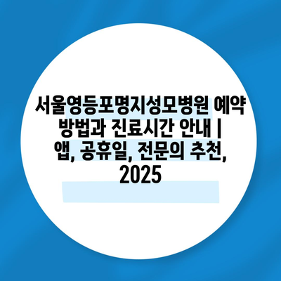 서울영등포명지성모병원 예약 방법과 진료시간 공지 | 앱, 공휴일, 전연락 추천, 2025에 대해 알아보겠습니다.