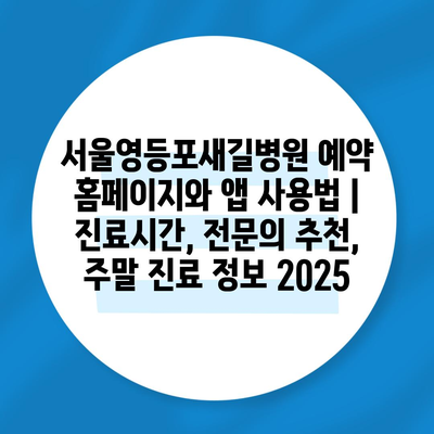 서울영등포새길병원 예약 홈페이지와 앱 사용법 | 진료시간, 전연락 추천, 주말 진료 정보 2025에 대해 자주 묻는 질문 TOP 5
