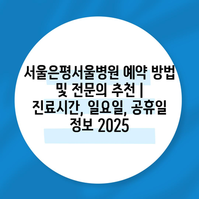 서울은평서울병원 예약 방법 및 전연락 추천 | 진료시간, 일요일, 공휴일 정보 2025에 대해 알아보겠습니다.