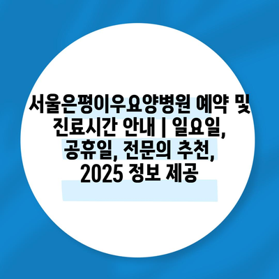 서울은평이우요양병원 예약 및 진료시간 안내 | 일요일, 공휴일, 전문의 추천, 2025 정보 제공
