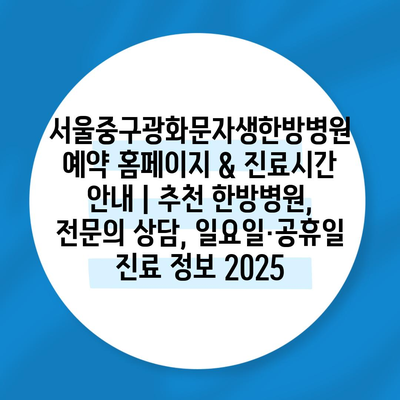 서울중구광화문자생한방병원 예약 홈페이지 & 진료시간 공지 | 추천 한방병원, 전연락 상담, 일요일·공휴일 진료 정보 2025 에 대해 자주 묻는 질문 TOP 5