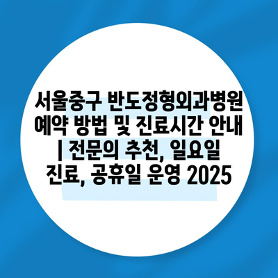 서울중구 반도정형외과병원 예약 방법 및 진료시간 공지 | 전연락 추천, 일요일 진료, 공휴일 운영 2025 에 대해 자주 묻는 질문 TOP 5