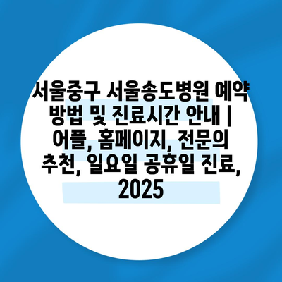 서울중구 서울송도병원 예약 방법 및 진료시간 공지 | 어플, 홈페이지, 전연락 추천, 일요일 공휴일 진료, 2025 에 대해 자주 묻는 질문 TOP 5