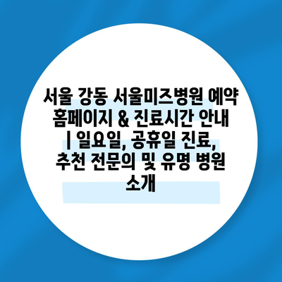 ✅ 서울미즈병원에서 제공하는 전문 진료 시간과 예약 방법을 알아보세요.