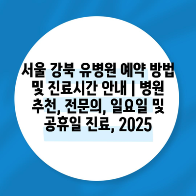 서울 강북 유병원 예약 방법 및 진료시간 공지 | 병원 추천, 전연락, 일요일 및 공휴일 진료, 2025 에 대해 자주 묻는 질문 TOP 5