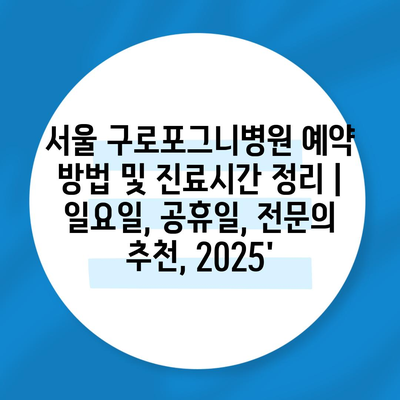 서울 구로포그니병원 예약 방법 및 진료시간 정리 | 일요일, 공휴일, 전연락 추천, 2025에 대해 소개합니다.