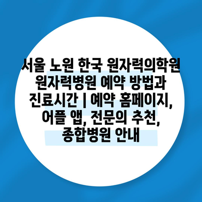 서울 노원 한국 원자력의학원 원자력병원 예약 방법과 진료시간 | 예약 홈페이지, 어플 앱, 전문의 추천, 종합병원 안내