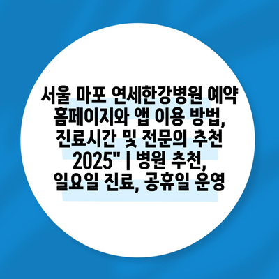 서울 마포 연세한강병원 예약 홈페이지와 앱 이용 방법, 진료시간 및 전연락 추천 2025″ | 병원 추천, 일요일 진료, 공휴일 운영 에 대해 자주 묻는 질문 TOP 5