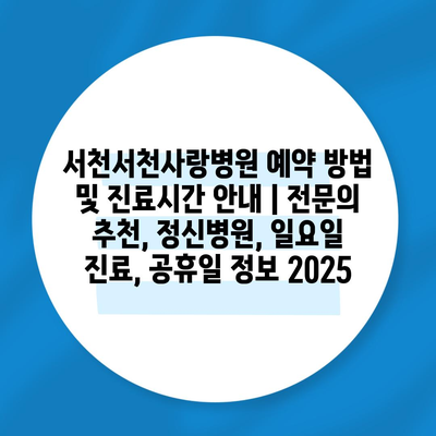 서천서천사랑병원 예약 방법 및 진료시간 공지 | 전연락 추천, 정신병원, 일요일 진료, 공휴일 정보 2025에 대해 자주 묻는 질문 TOP 5