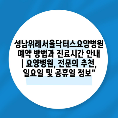 ✅ 성남위례서울닥터스요양병원의 예약 방법을 자세히 알아보세요!