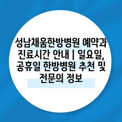 ✅ 성남채움한방병원의 예약 방법과 진료시간을 알아보세요.