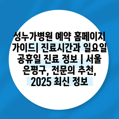 성누가병원 예약 홈페이지 설명서| 진료시간과 일요일 공휴일 진료 정보 | 서울 은평구, 전연락 추천, 2025 최신 정보 에 대해 자주 묻는 질문 TOP 5