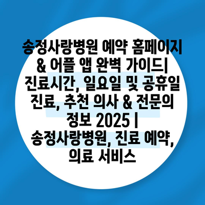 ✅ 송정사랑병원의 예약 방법과 팁을 지금 확인해 보세요.