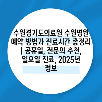 수원경기도의료원 수원병원 예약 방법과 진료시간 총정리 | 공휴일, 전연락 추천, 일요일 진료, 2025년 정보 에 대해 자주 묻는 질문 TOP 5