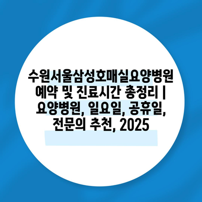 수원서울삼성호매실요양병원 예약 및 진료시간 총정리 | 요양병원, 일요일, 공휴일, 전연락 추천, 2025 에 대해 자주 묻는 질문 TOP 5